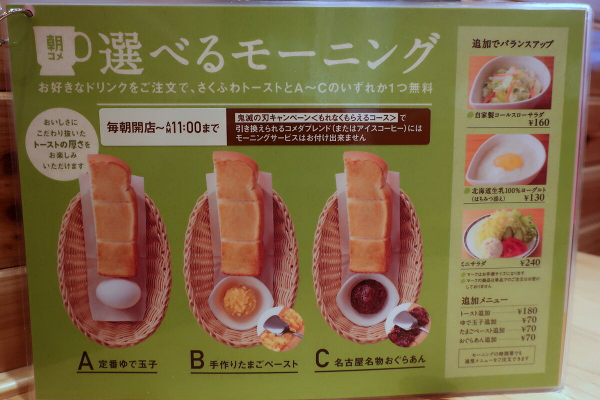 コメダと言えばやっぱモーニンでしょってことで朝9時半くらいに入店。