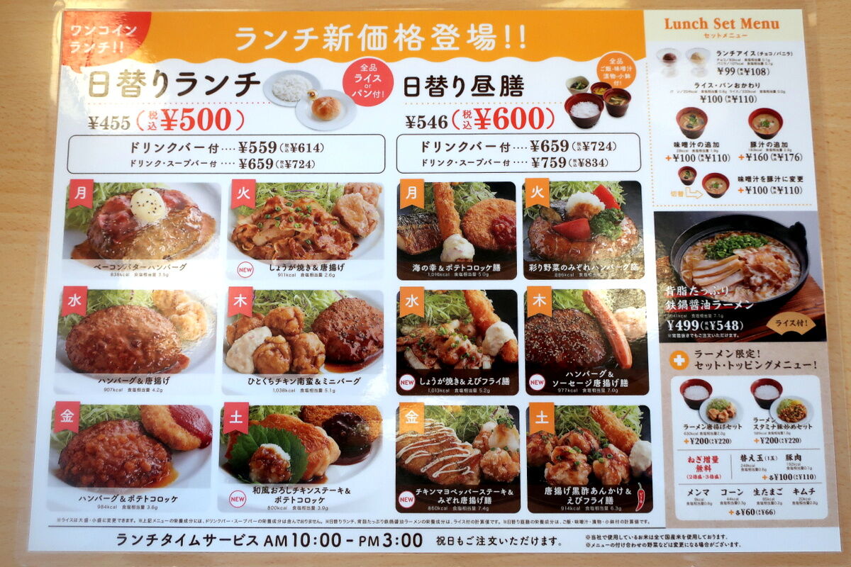 (ちなみ清算後レシートを確認するとご飯大盛りは無料だった)