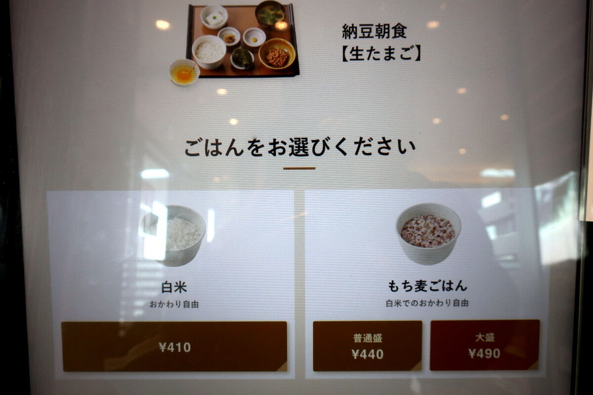 入り口のタッチパネル券売機で朝食メニューをタップ。