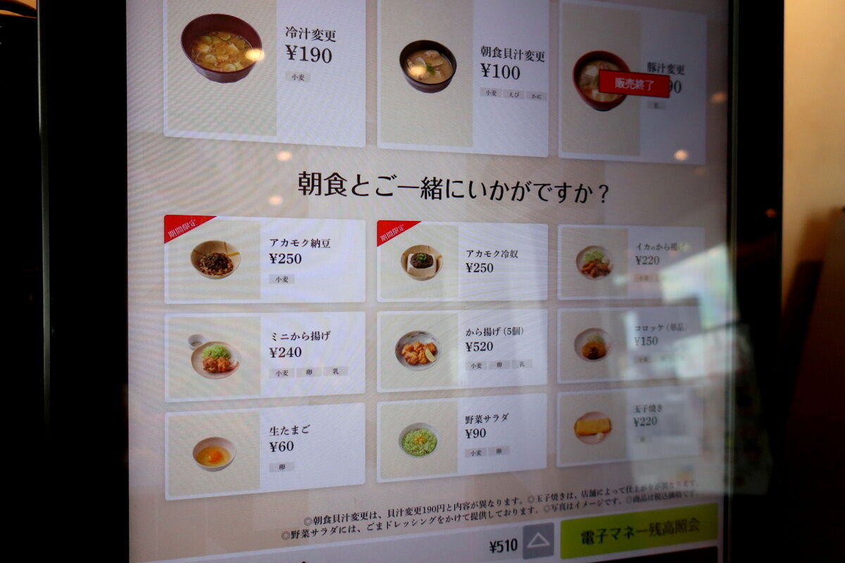 タッチパネル券売機で鯖の塩焼きをタップ。