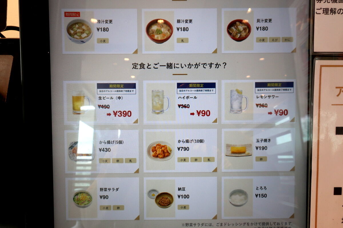 食券機でチキン南蛮定食(込700円)を購入後カウンターの端に着く。